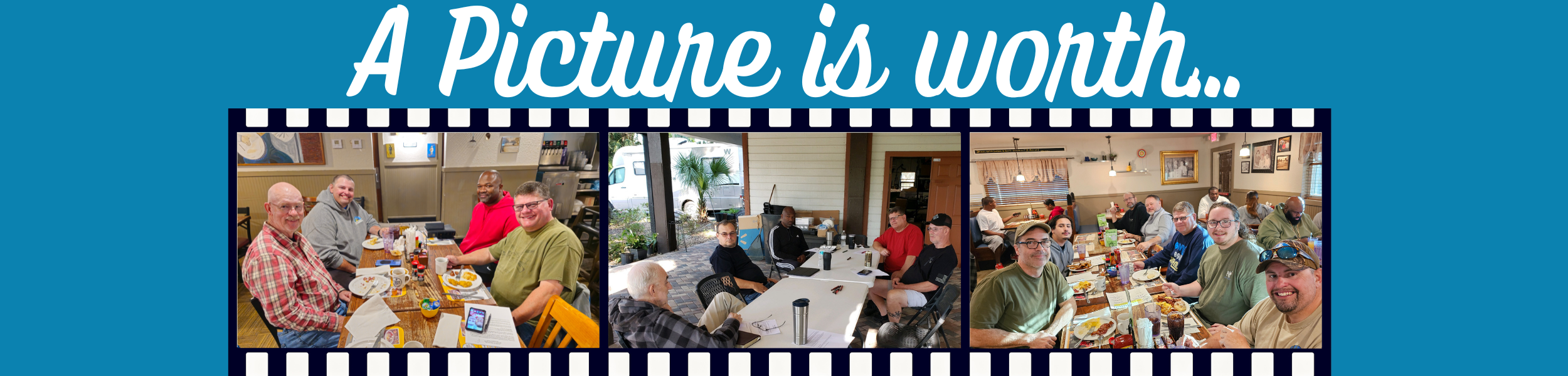 The men gather the first of each month for a breakfast. The also have other events, such as conferences, retreats, and other gatherings. We have been able to get at least one photo of a recent breakfast. They enjoy their time and forget to get pictures!